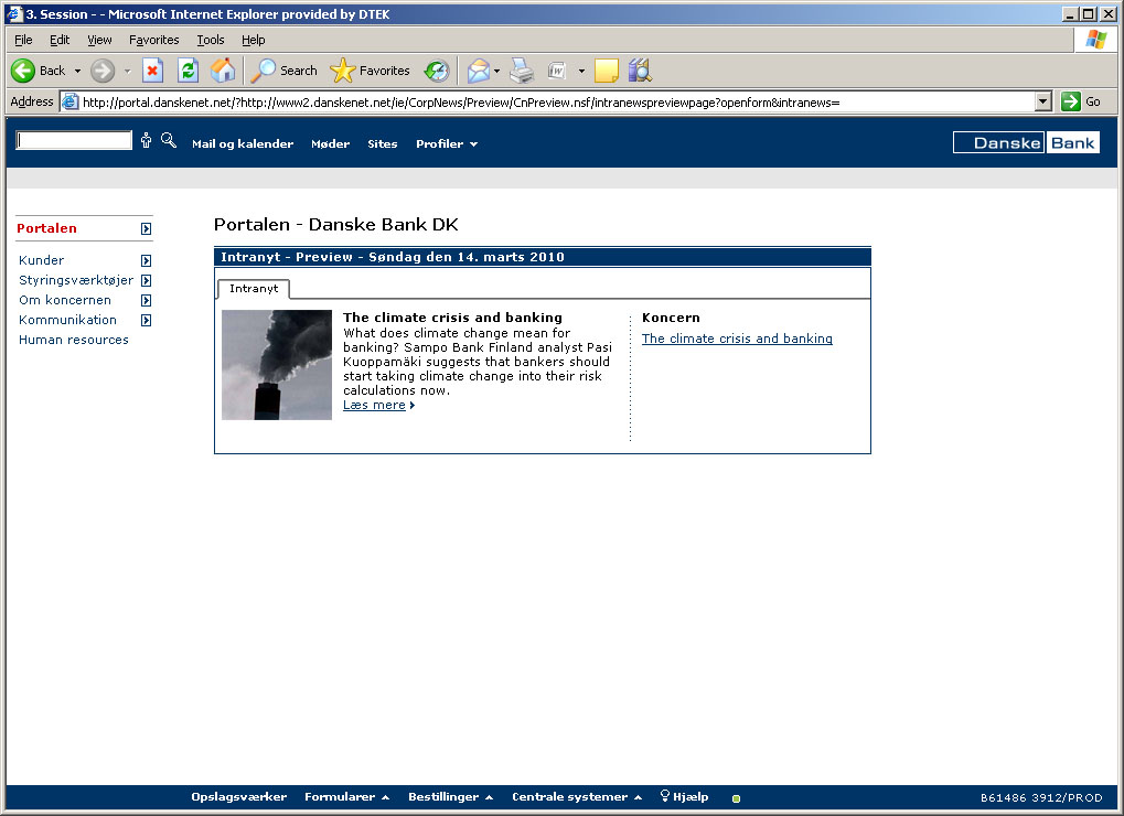 | | 2002-2010. | | Corporate communications professional at Danske Bank, Denmark's largest financial institution. Editor of Danske Magazine, a news and feature publication distributed to 22,000 employees of the Danske Bank Group in Denmark, Norway, Sweden, Finland, Ireland and the Baltic countries. The magazine was named one of the top 3 corporate magazines in Europe in 2008. Sample Journalist contributing regular news features to the company's daily Intranet. Sample Producer, editor, and English-language voiceover for corporate news videos.Sample
